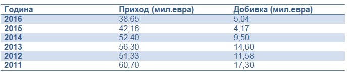 Според официјалните податоци најголема добивка ТКС имал во 2011 година и таа изнесува 17,3 милиони евра и е 28,5 отсто од приходите на компанијата. Во овој период најмала добивка имало во 2014 година и таа изнесува 4,17 милиони денари и е 9,9 отсто од приходите. Во периодот од 2011 до 2016 година ТКС имал приходи во износ од 301,5 милиони евра. Најголем приход компанијата имала во 2011 година и тие изнесувале над 60 милиони евра. Лани биле најмали во овој период и изнесувале 38,65 милиони евра.