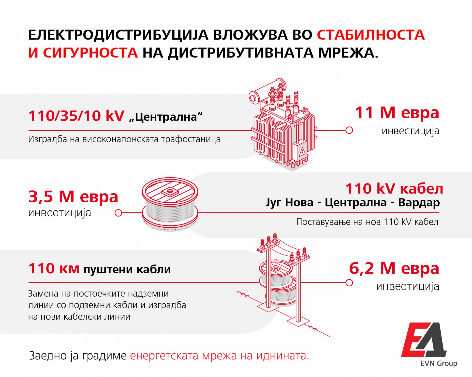 Електродистрибуција во првата половина од годината инвестираше над 20 милиони евра во модернизација и реконструкција на дистрибутивната мрежа на висок и среден напон. Овие значајни инвестиции се наменети за проекти чија цел e долгорочно подобрување на квалитетот и сигурноста во снабдувањето на корисниците, како и зголемување на моќноста и капацитетот на дистрибутивната мрежа.