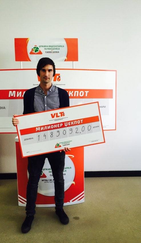 Во друштво на своите пријатели, тој дојде и во просториите на Државна Видеолотарија, да го подигне својот МИЛИОНЕР ЏЕК ПОТ чек, кој гласи на добитниот износ од 1.489.092,00 денари. Засега, нема план како да ги троши парите од оваа добивка. Но, им се радува. Тие се негова прва добивка иако со игрите на среќа се забавувал често.