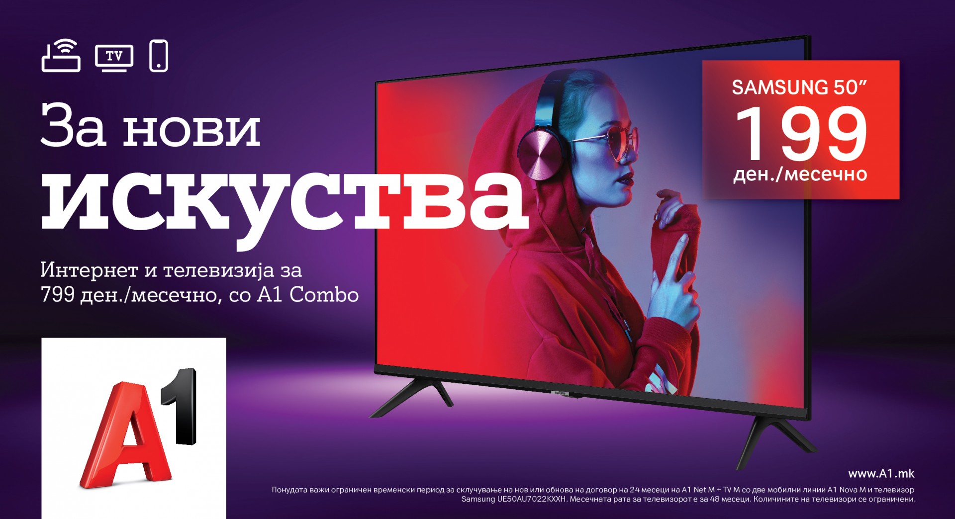 За новата понуда која е промотивна и ќе важи ограничен период, повеќе информации можат да се добијат на www.A1.mk.