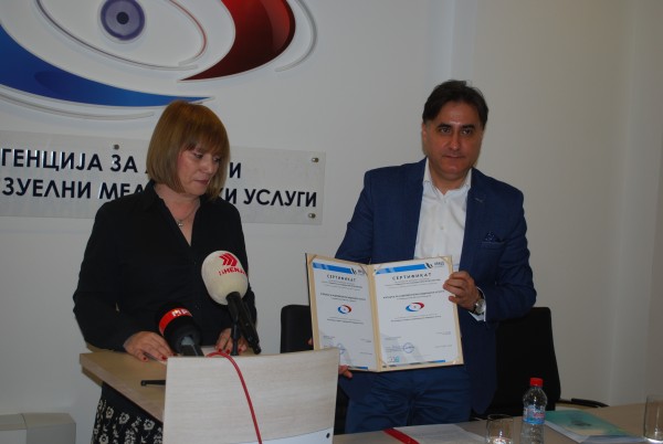 Агенција за аудио и аудиовизуелни медиумски услуги се здоби со сертификатот ИСО 9001:2008