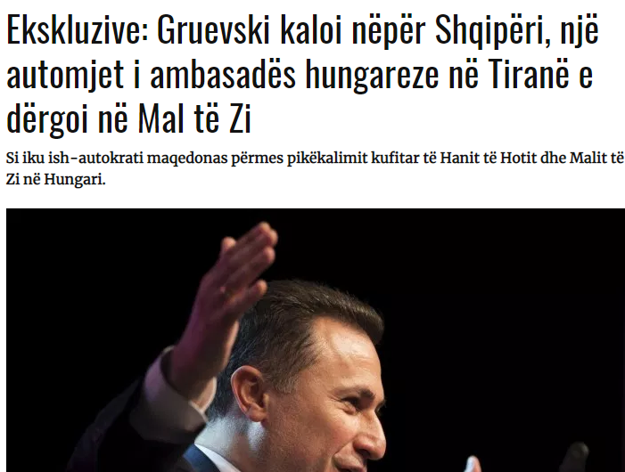 Албански полициски извори: Груевски поминал низ Тирана преку Црна Гора до Унгарија