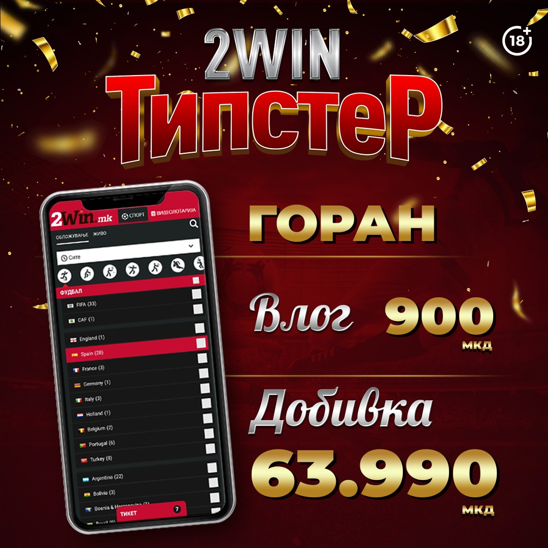 2winТипстер за минатата недела е Горан. Тојуспеасовлогод 900 денари да си обезбеди добитен тикет вреден 63.990 денари.