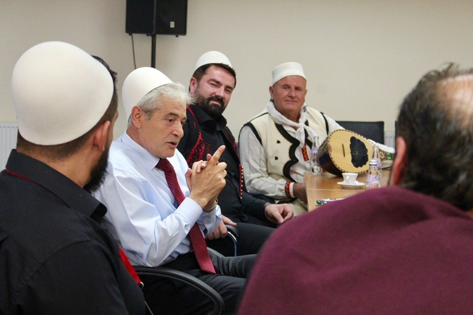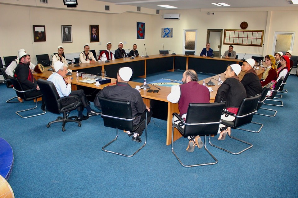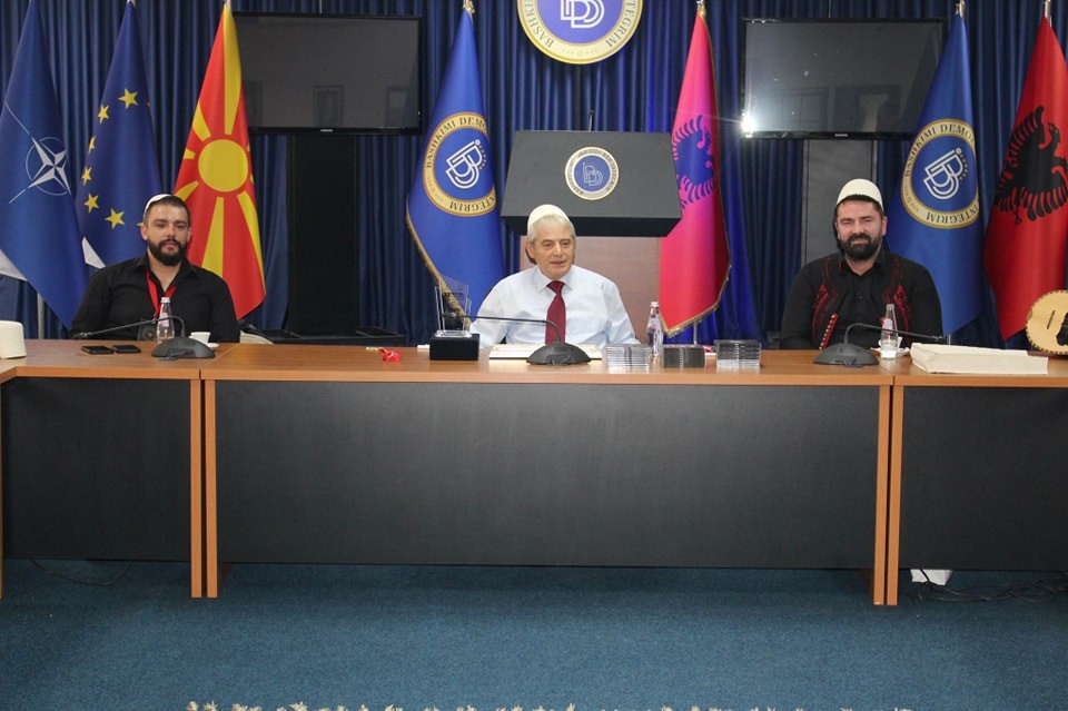 Али Ахмети со бело кече во посета на албанскиот ансамбл