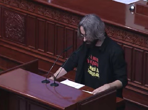 Претседателот на Левица и пратеник во Собранието го праша спикерот Талат Џафери зошто во ходниците имало 30 лица кои се шетале со пиштоли.