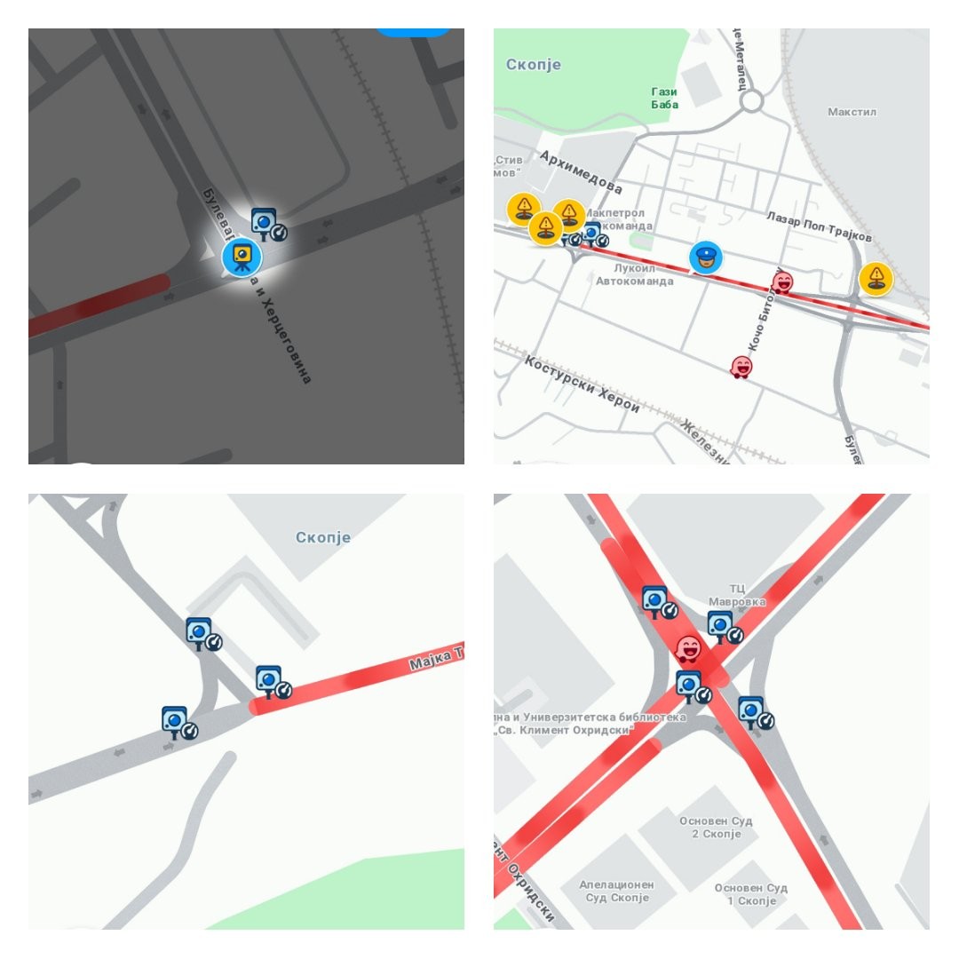 Една од тие апликации е „Waze“, на која ги има речиси сите поставени камери. Апликацијата нуди предупредување за сообраќаен метеж, работи на патот, камери или полиција на делницата по која што возите.