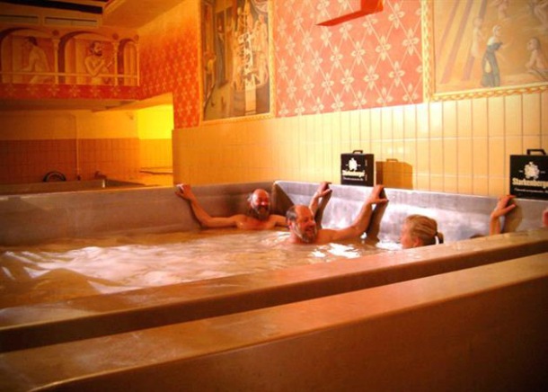 Секој базен е длабок речиси четири метри и преполн со пиво од „Штаркенбергер“ пиварата.