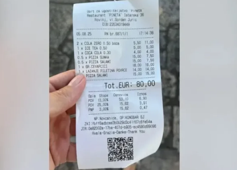 Фотографија од сметка од ресторан во Ровињ неодамна предизвика жестоки дискусии на социјалните мрежи.
