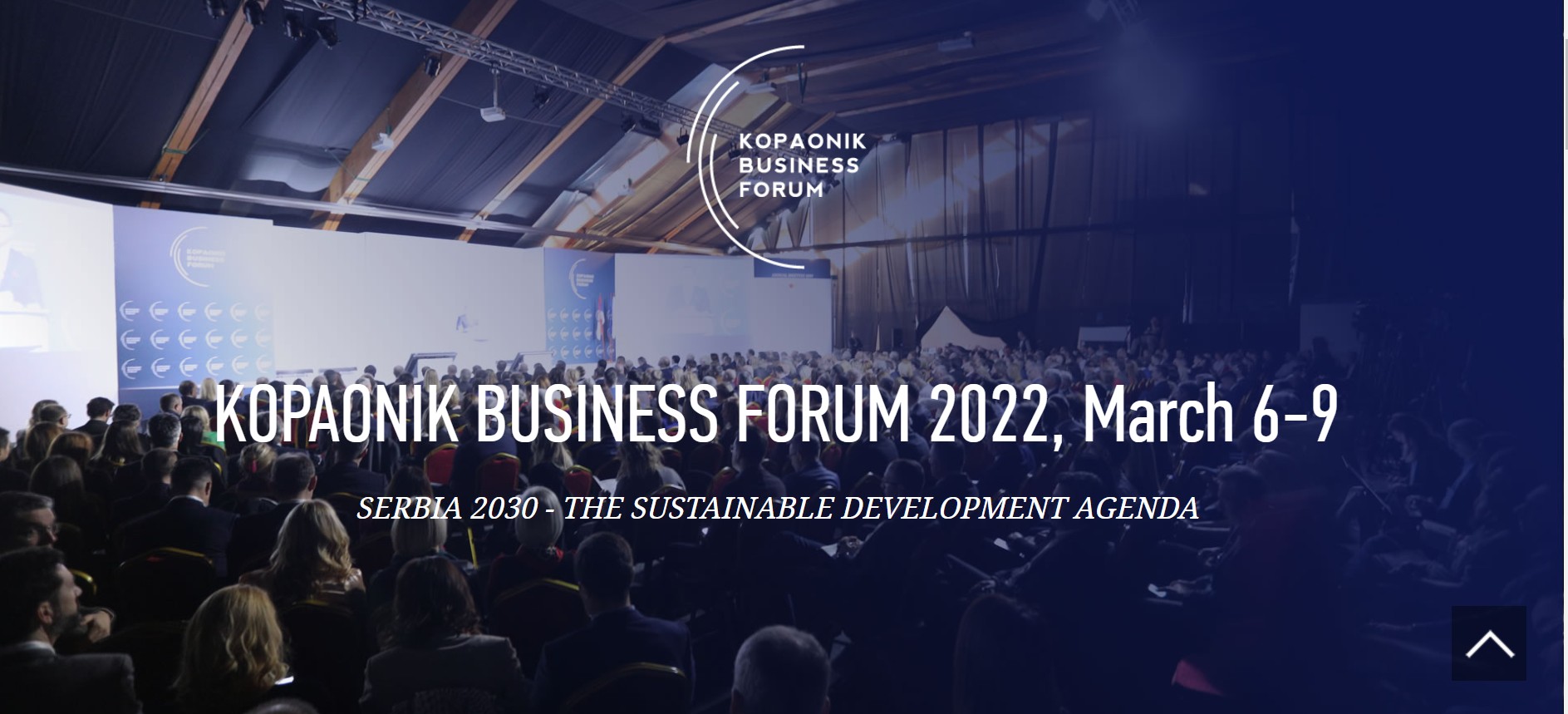 Копаоник бизнис форум годинава се одржува од 6 до 9 март под слоганот - „Србија 2030: Агенда за одржлив развој“, поаѓајќи од фактот дека Србија учествуваше во изготвувањето на Агендата за 2030 година, која беше усвоена во Собранието на ОН, и дека заедно со другите земји потписнички се обврза да ги исполни дефинираните цели. На 29. Копаоник бизнис форум, во четири последователни дена ќе се реализираат триесет и три (33) панели, со 200 панелисти, а предвидени се 8 пленарни говори на кој ќе се дебатира за тековни и стратешки теми од значење за економскиот развој на Западен Балкан.