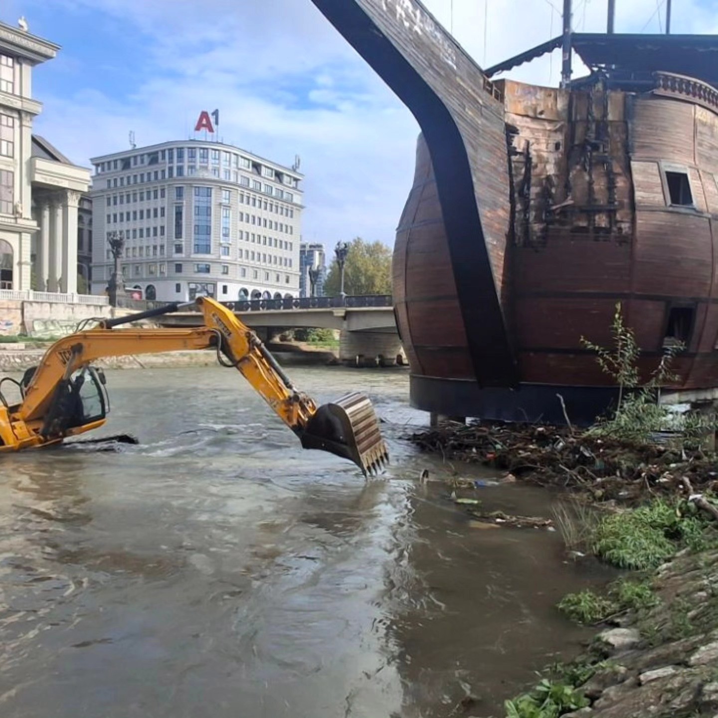 „Во рамките на акцијата на Град Скопје и денес продолжуваат екипите на ЈП „Улици и патишта"- Скопје со активно машинско чистење на коритото на река Вардар во делот кај Галиите и рачно чистење и собирање на сметот од косините и скалилата кај кеј на река Вардар“, информираа од ЈП Улици и патишта, на социјалните мрежи.