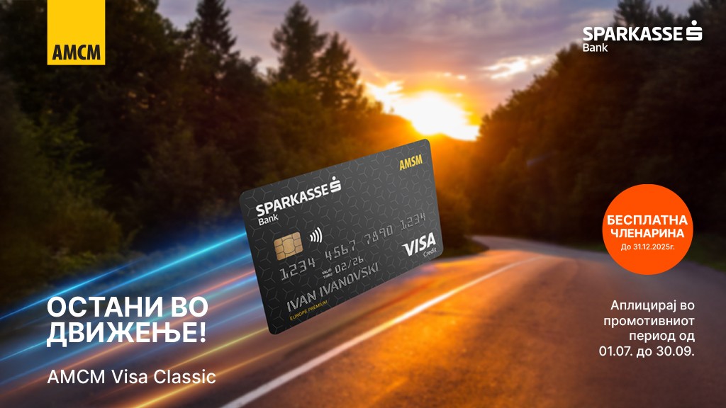 Аплицирај за кредитна картичка Visa АМСМ Classic од Шпаркасе Банка до 30 септември 2025 и ослободи се од членарина до 31 декември 2025 година!