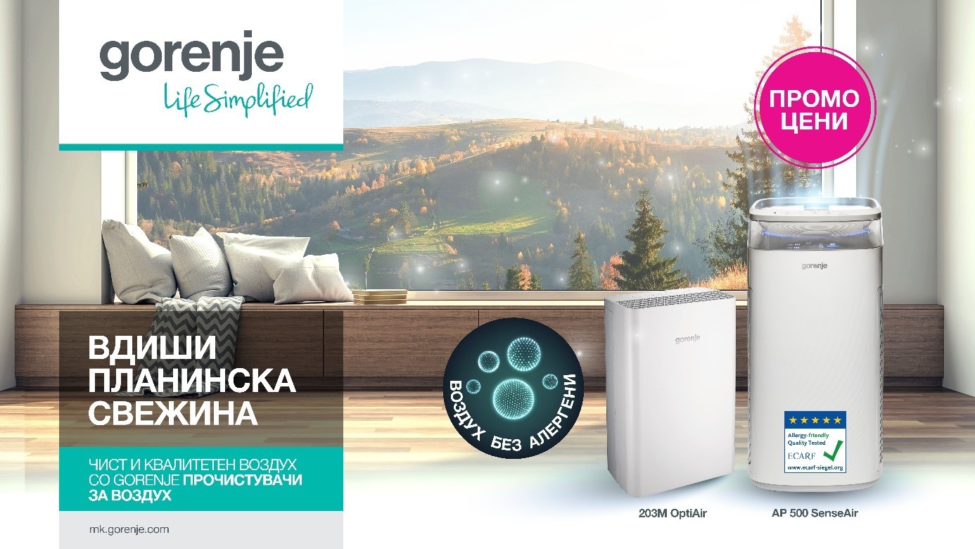 Претворете го својот дом во планинска идила со чист и квалитетен воздух со Gorenje прочистувачите на воздух сега по промотивна цена.