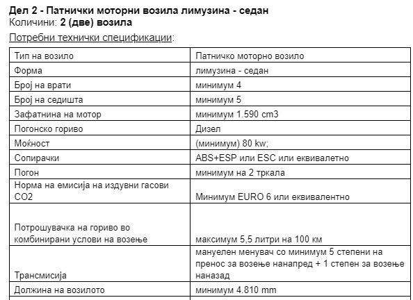 Две лимузини и четири хечбек возила од средна класа. Вака изгледа новиот јавен оглас од Собранието на РМ за потребите на истото.