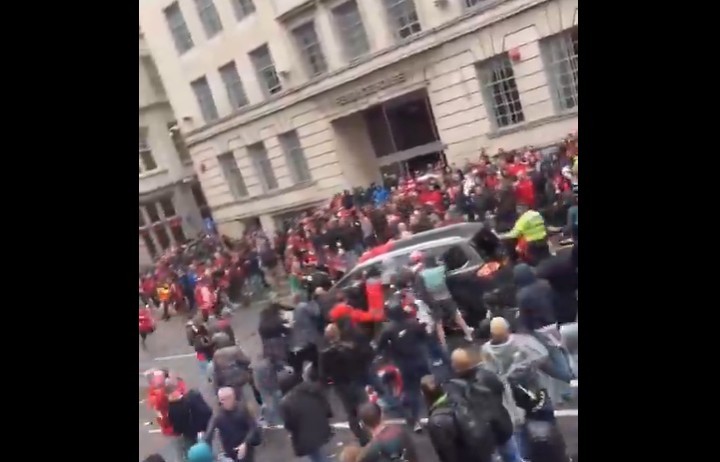 A car ploughed into the Liverpool fans crowd. Many injured.