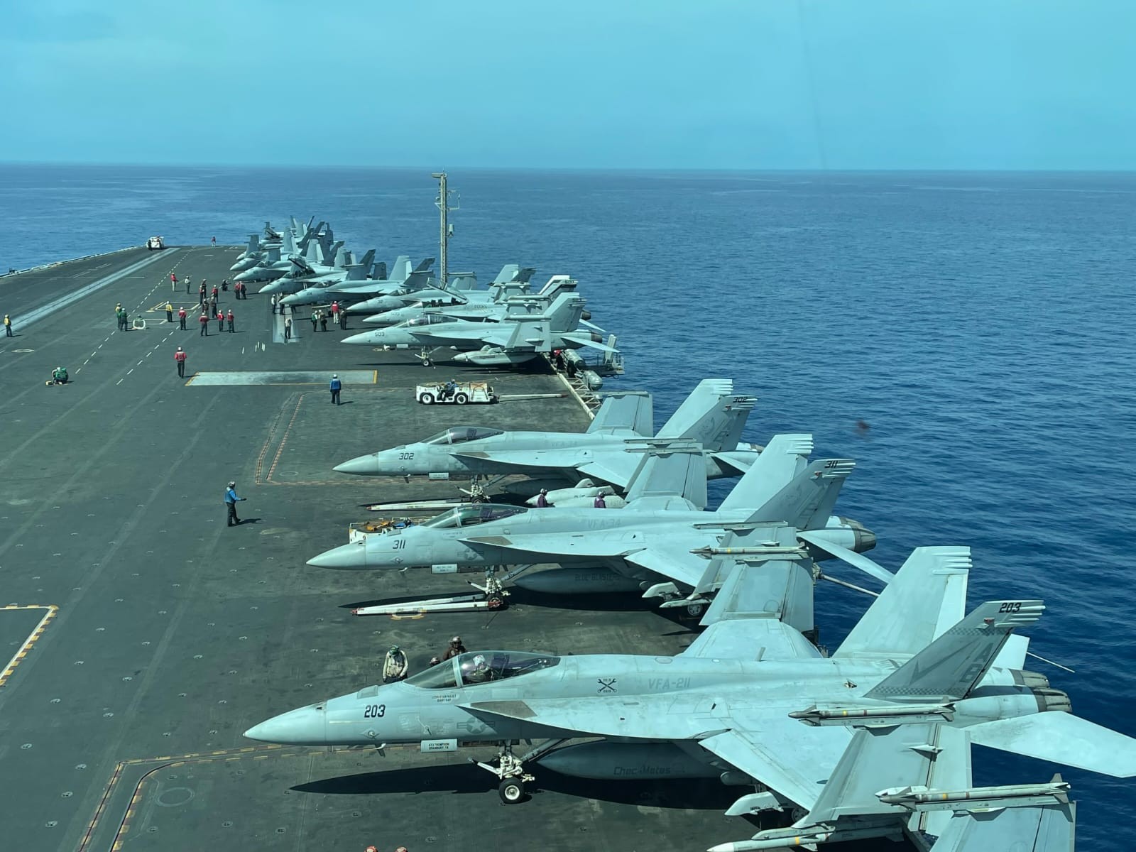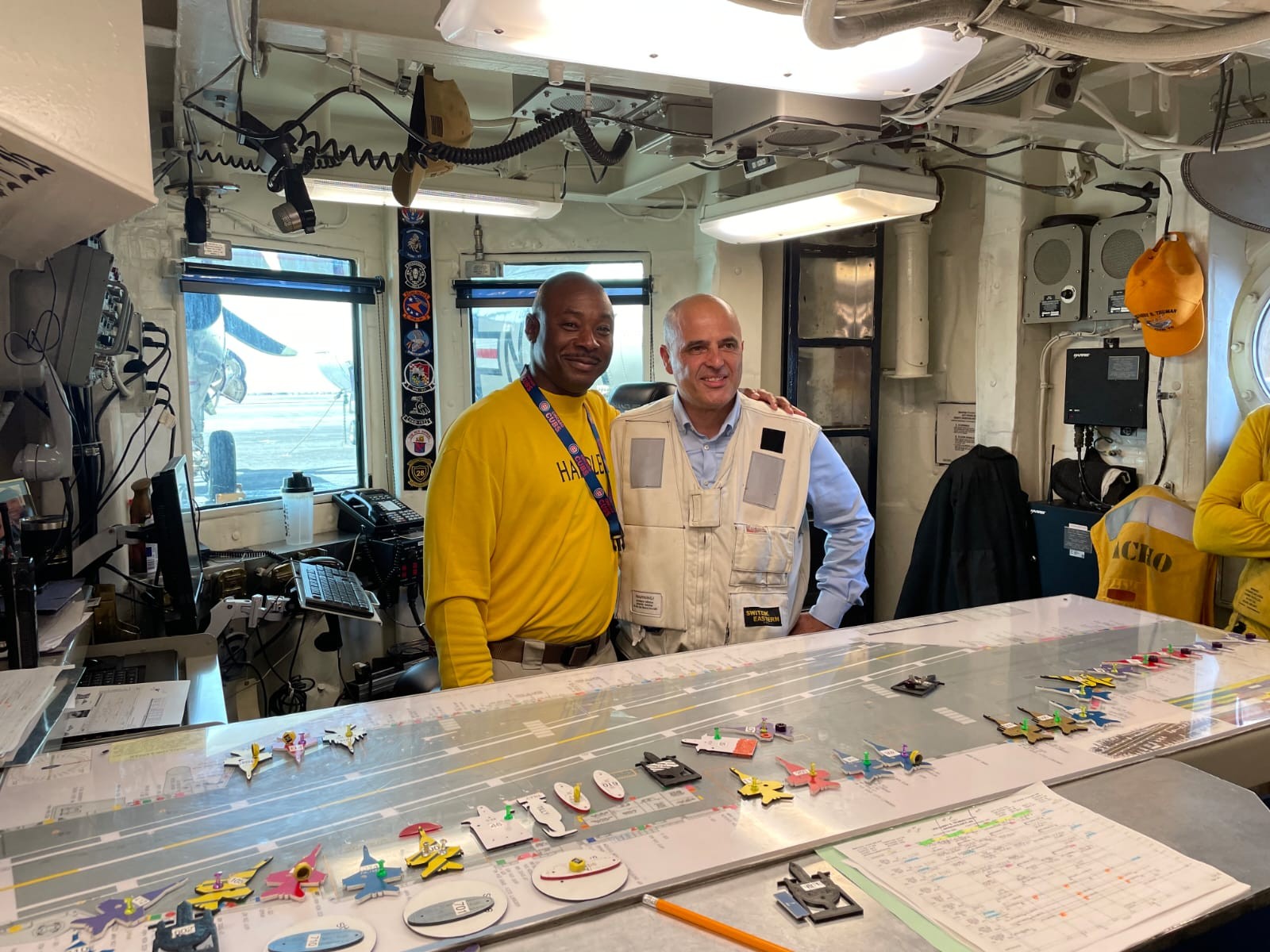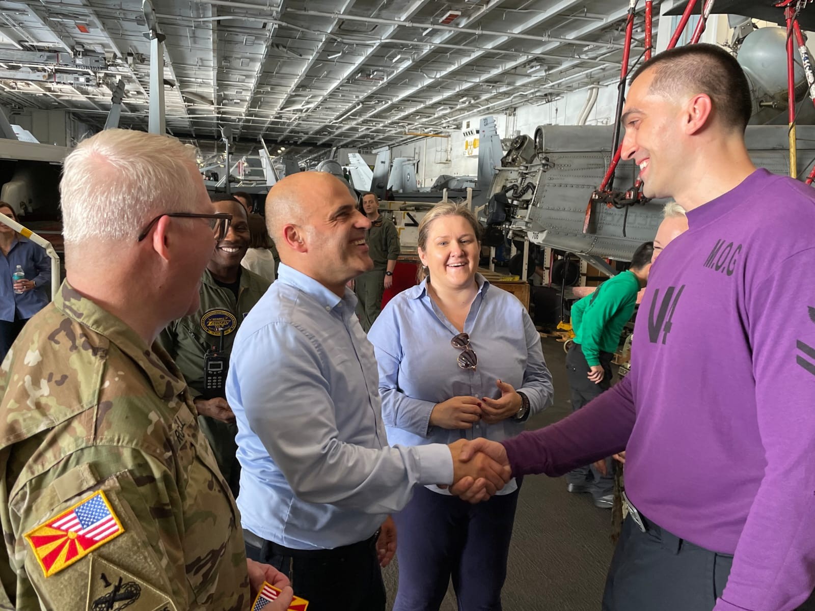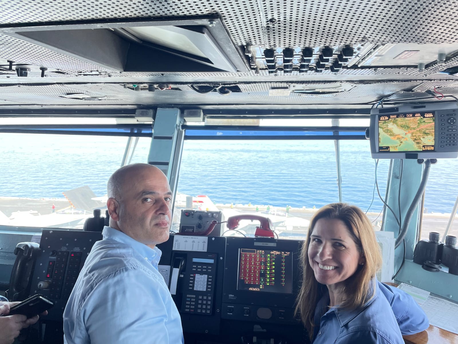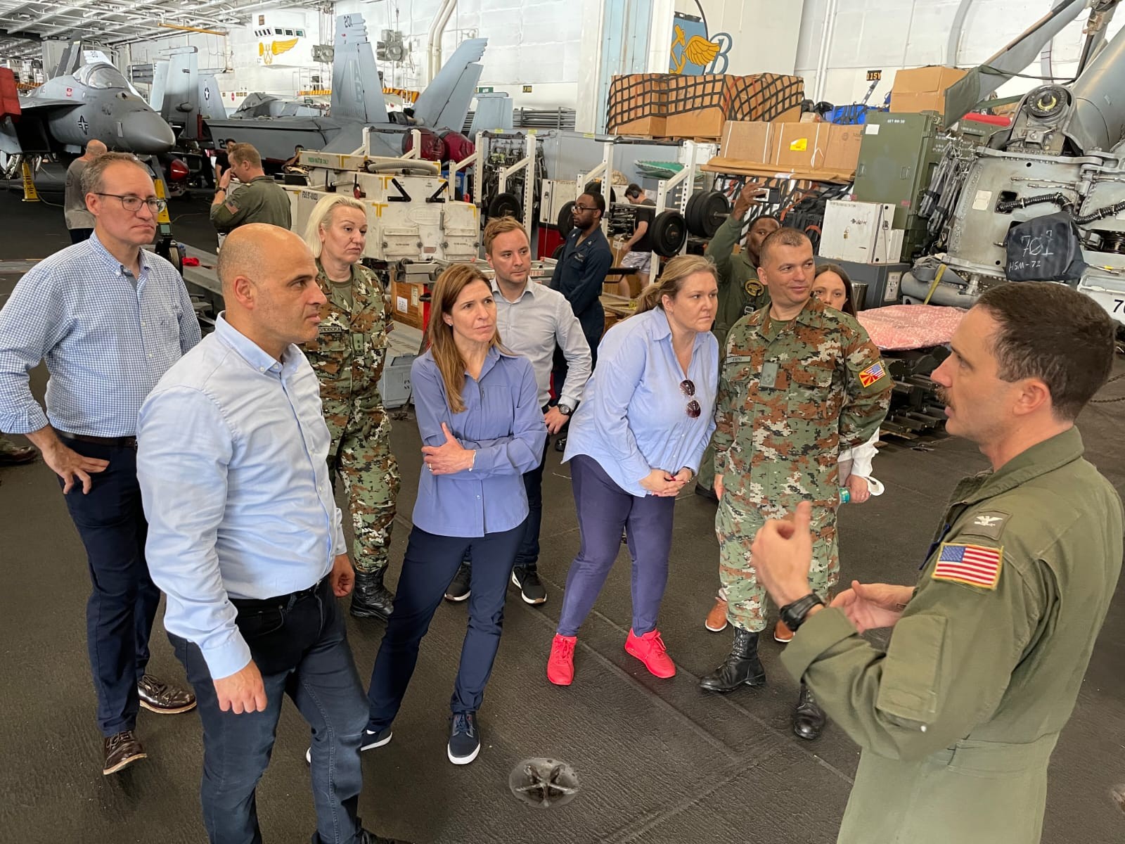 Премиерот на „Хари труман“ е заедно со министерката за одбрана, Славјанка Петровска и амбасадорката на САД во нашата земја, Кејт Брнз.