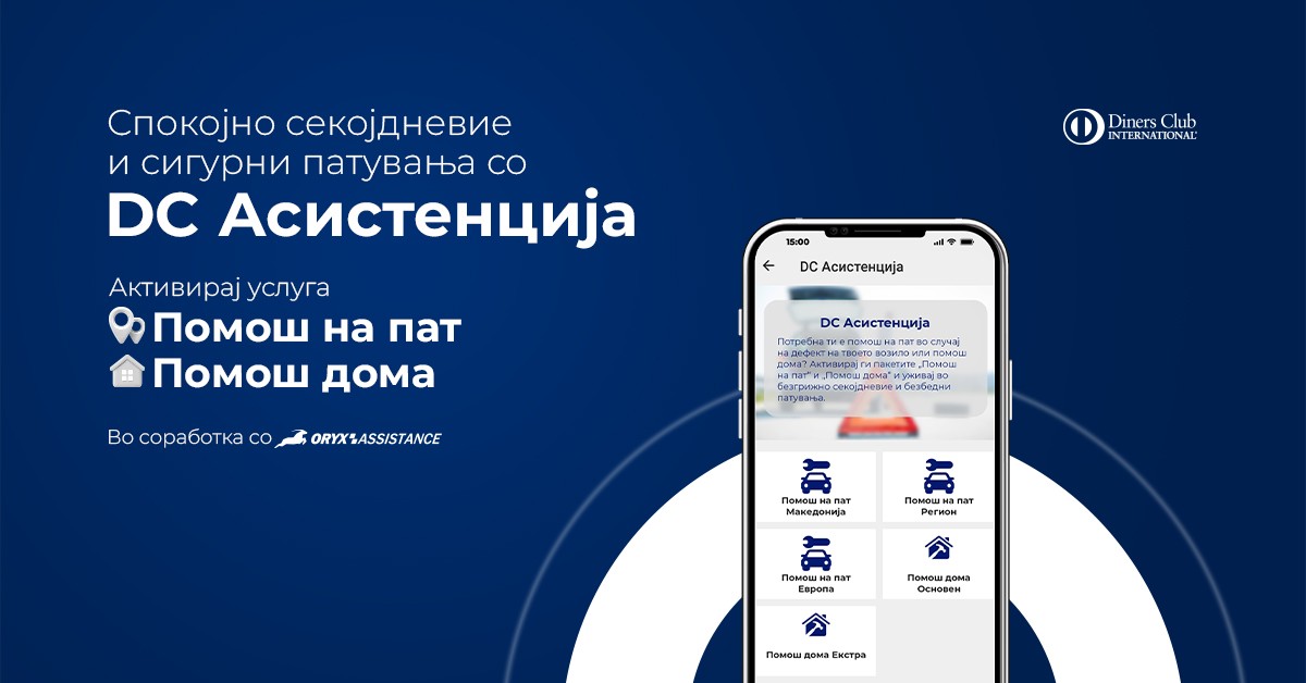 „Повеќе од 25 години на нашето членство му нудиме поголема финансиска сигурност во секое време и на секое место. Преку новата услуга, DC Асистенција, одиме чекор подалеку и дополнително го унапредуваме корисничкото искуство на членовите преку поддршка и ефикасно решение на нивните секојдневни потреби дома и на пат.“ – вака Diners Club ја најави нивната најнова услуга DC Асистенција, која има за цел да го збогати и унапреди корисничкото искуство на членовите на Diners Club.