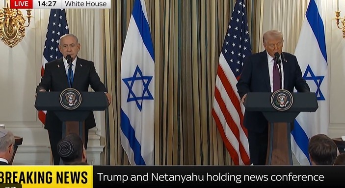 Телефонската конференција по неговата средба со израелскиот премиер Бенјамин Нетанјаху беше одложена за повеќе од еден час, а кога двајцата лидери се појавија пред новинарите, Трамп објави дека прекинот на огнот во Газа е „поблиску од кога било“.