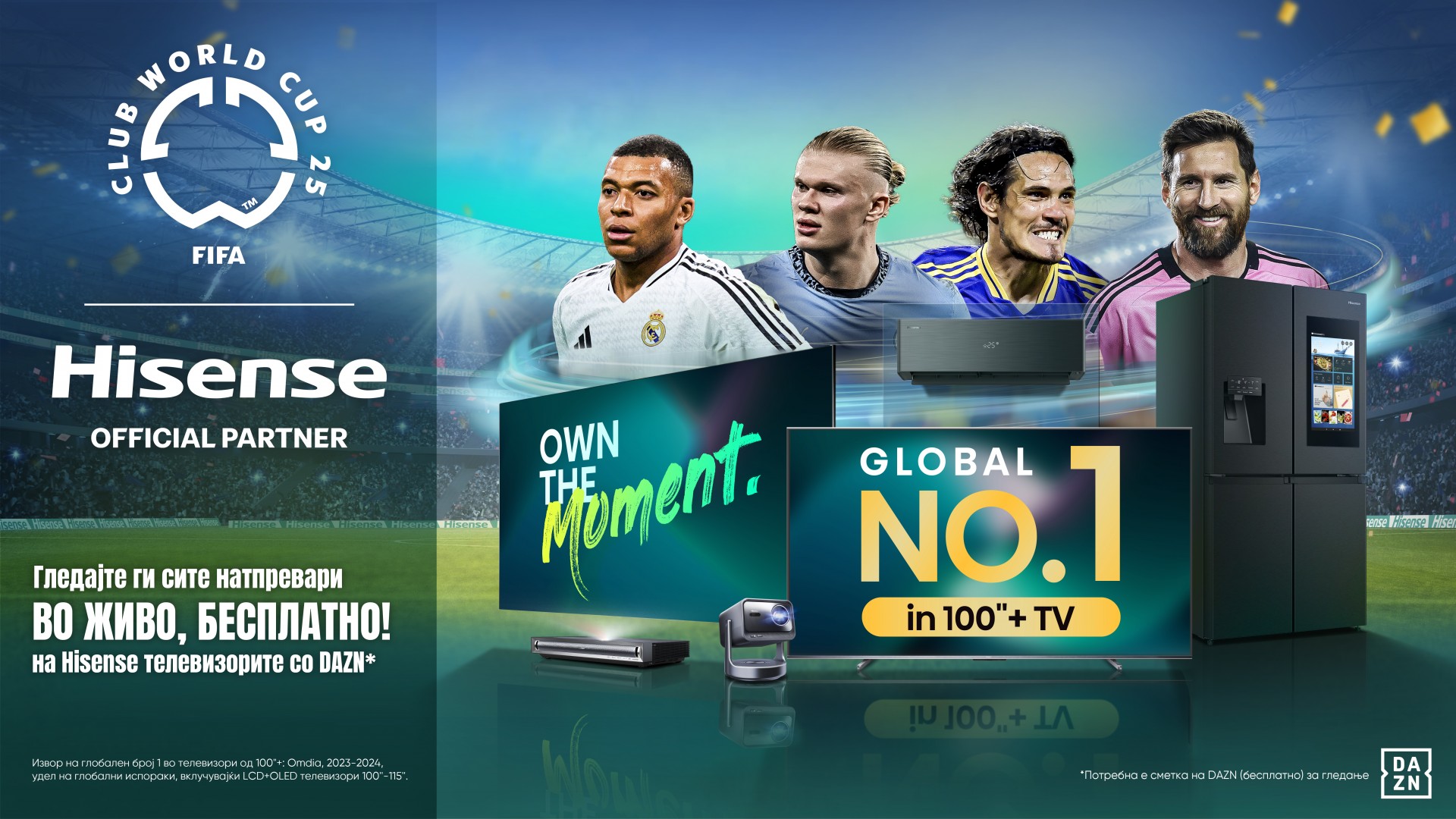 Hisense ја започна кампањата „Own the moment“, во која се вели дека искуствата за време на FIFA Club World Cup 2025™можат да нè зближат и да ни го подобрат секојдневниот живот. Како официјален партнер на летниот фудбалски спектакл, кампањата на Hisense ја одразува нејзината посветеност на иновациите, технологијата и шампионскиот дух.