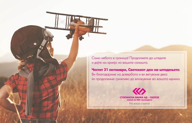 Стопанска банка АД – Скопје како и секоја година го одбележува денот на штедење кој е креиран не само да го поттикне штедењето туку и да обезбеди поширока платформа за разбирање на ефектот од штедењето за економијата и општеството. За таа цел, во текот на овие 2 недели, во i-bank store доаѓаа и ќе доаѓаат ученици од основно, средно, но и деца од градинките во Скопје со цел да научат нешто повеќе за штедењето, улогата на банките и начините како да се создаде и искористи заштедата за подобро утре.
