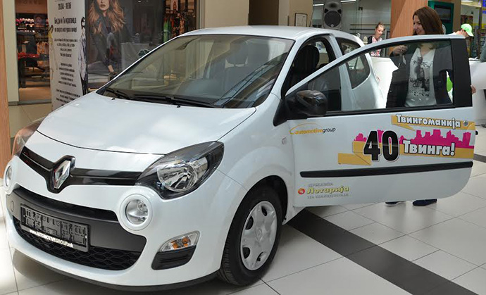 Уште едно потсетување , инстант лозот Твингоманија им овозможува на играчите лесен, брз и забавен начин да дојдат до еден од 40-те атрактивни автомобили РЕНО ТВИНГО ТРЕНД, или до бројни добивки од 40 до 500.000 денари. Сите овие добивки ги овозможува Државна лотарија на Македонија , а 40-те автомобили ТВИНГО ТРЕНД се овозможени во соработка со Аутомотив Груп како официјален застапник на реномираниот бренд Рено .