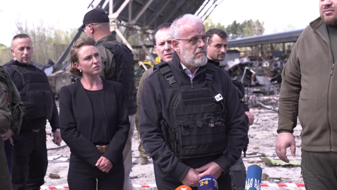 Џафери, придружуван од украинска делегација, предводена од претседателот на Врховната Рада, Руслан Стефанчук, денеска ја посети Украина, поточно киевската област и местата каде што, според тврдењата на украинските власти, се пронајдени масовни гробници.