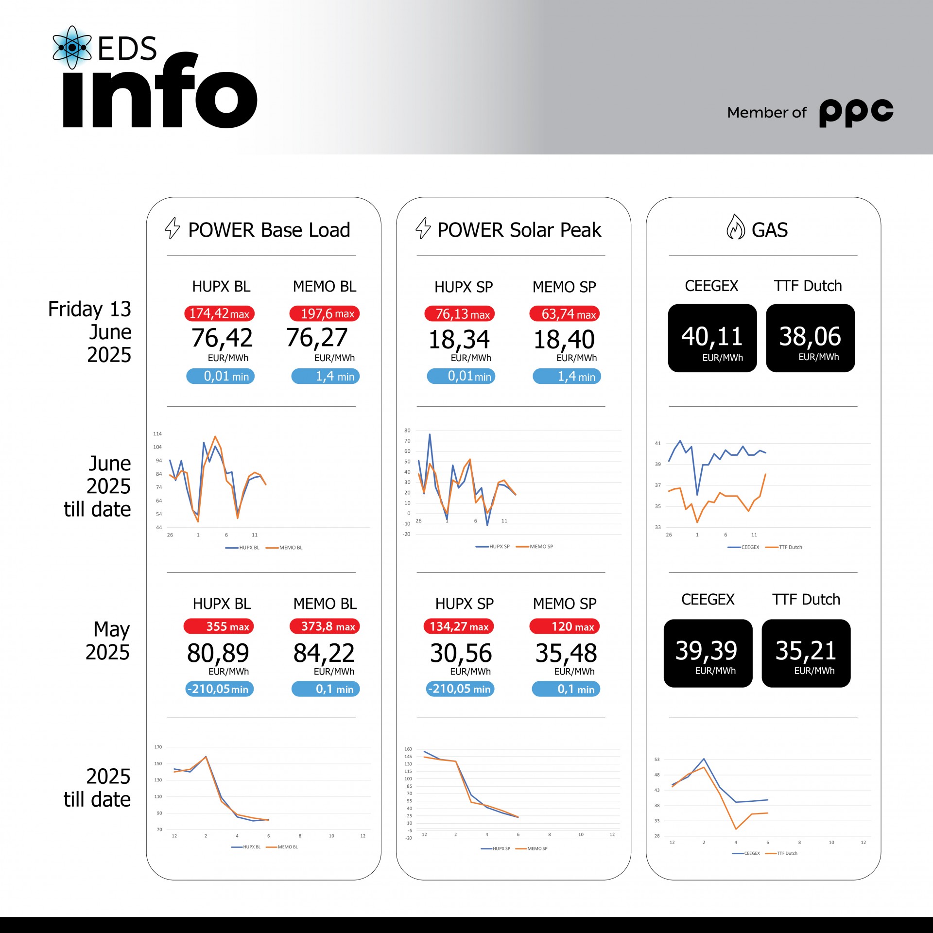 Цената на електричната енергија во текот на дневните часови (9:00 – 15:00) (Power solar peak) на HUPX постигна ниво од 18,34 евра за мегават час, а на MEMO 18,40евра.