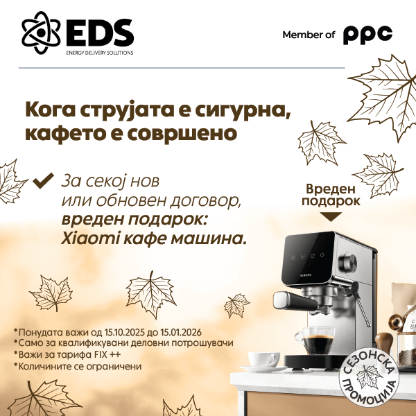Со оваа промотивна кампања, ЕДС уште еднаш ја потврдува својата ориентација кон клиентите, нудејќи енергетски решенија што носат сигурност, стабилност и заштеда – и сега, со еспресо вкус на партнерството.