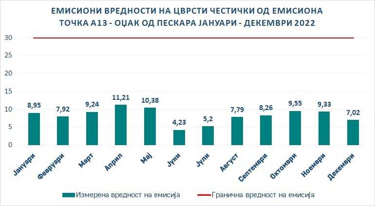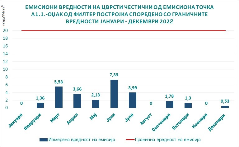 Емисионите вредности на Макстил во текот на цела 2022 година се многу пониски од дозволените