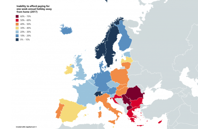 Но, повеќе од 90 проценти од Норвежаните, Швеѓаните и Швајцарците може да си дозволат барем една недела одмор надвор од земјата.