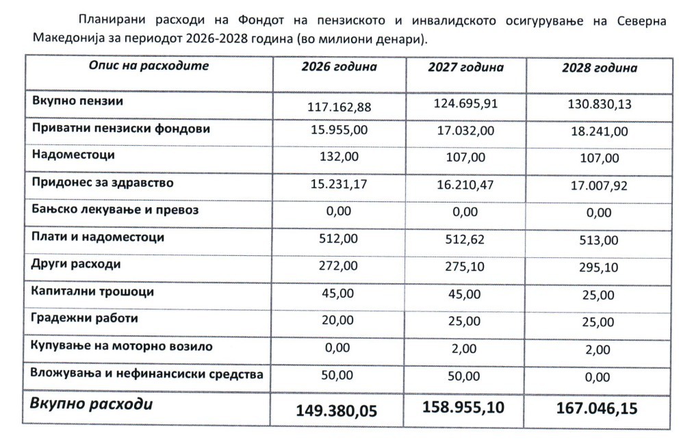 Откако ПИОМ ги „скори“ буџетите за следните три години видовме дека трошокот за исплата на пензиите во следните години ќе продолжи да се зголемува. Согласно нивниот стратешки план за 2026 – 2028 година вкупните трошоци на Фондот ќе продолжат да растат, а во рамките на овие трошоци се вкалкулирани и платите на вработените.