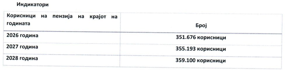 Според проекциите во текот на следната година се очекува пензија да земаат 351.676 корисници, додека пак во 2027 година нивнот број ќе достигне на 355.193 корисници. Веќе во 2028 година бројот на пензионери треба да се зголеми уште повеќе и да достигне до 359.100 корисници на пензии по различен основ.