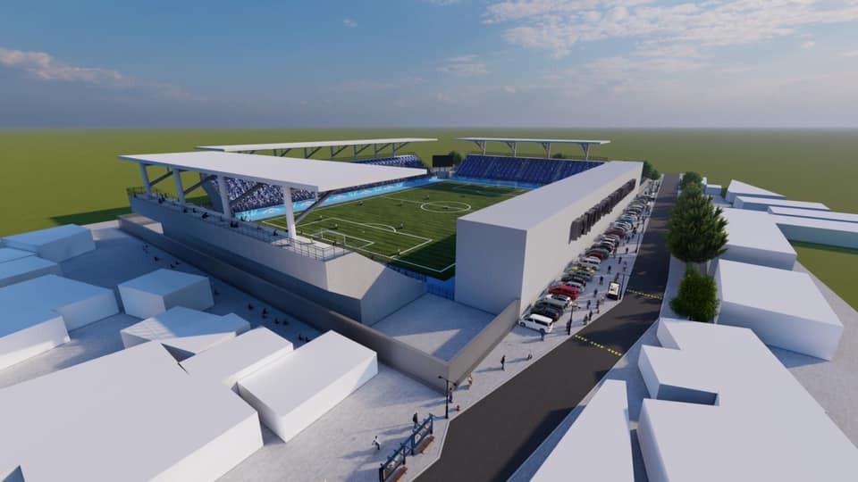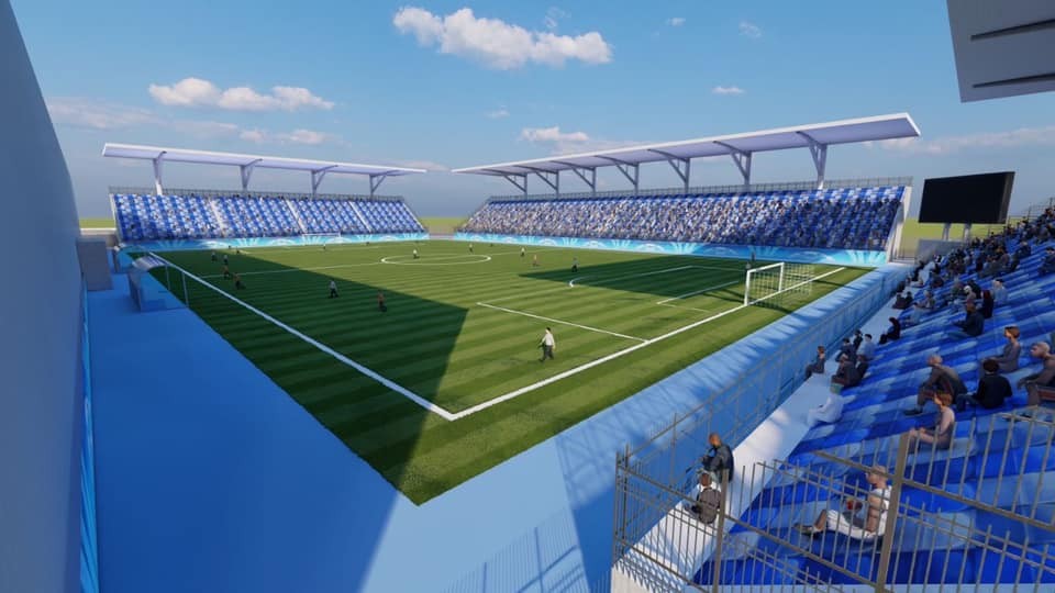 Оаа е идејно решение за модерен фудбалски стадион со 3 трибини со капацитет од 5 000 гледачи.