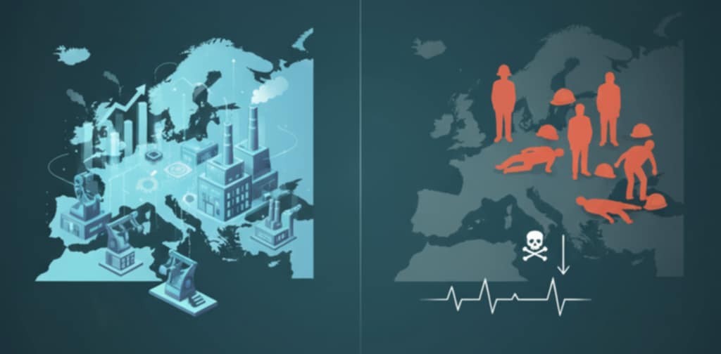 Но, иако се очекува раст на индустрискиот сектор на ЕУ, истовремено расте и бројот на работници во ризик по сопствениот живот и здравје. Организациите за заштита при работа проценуваат дека годишно во земјите од Европската Унија гинат околу 175 илјади работници.