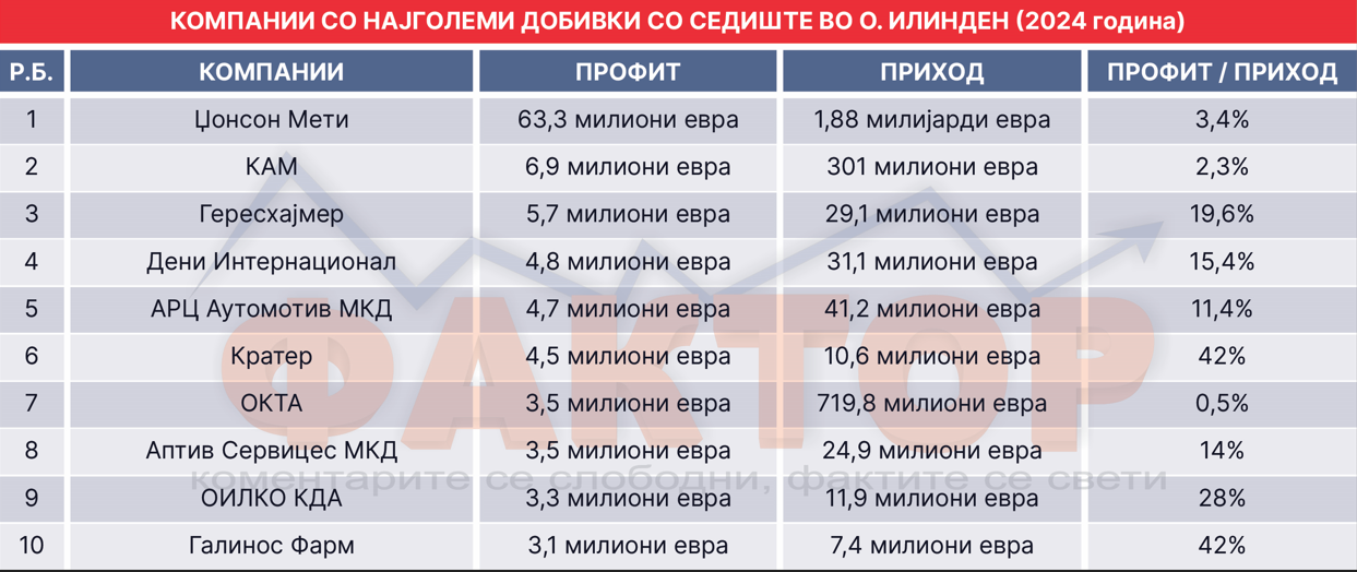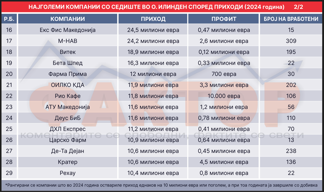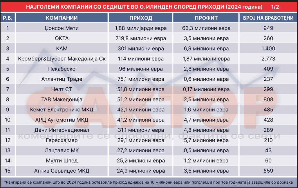 Фактор анализа ИЛИНДЕН 2024: Најбогатата општина во Македонија! Има 16 фирми со профит поголем од еден милион евра