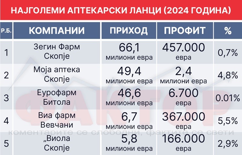 ФАКТОР АНАЛИЗА: Колку пари вртат, а колку заработуваат најголемите аптекарски ланци?