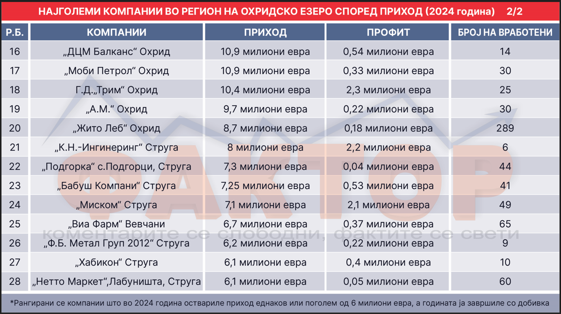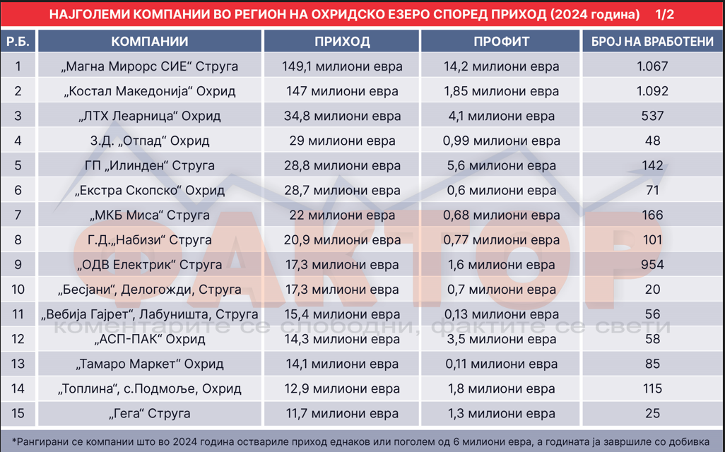 Фактор анализа ОХРИД-СТРУГА 2024: Охрид притиска, но Струга не пушта! Кои се најголемите и најуспешни компани на брегот на Охридско езеро