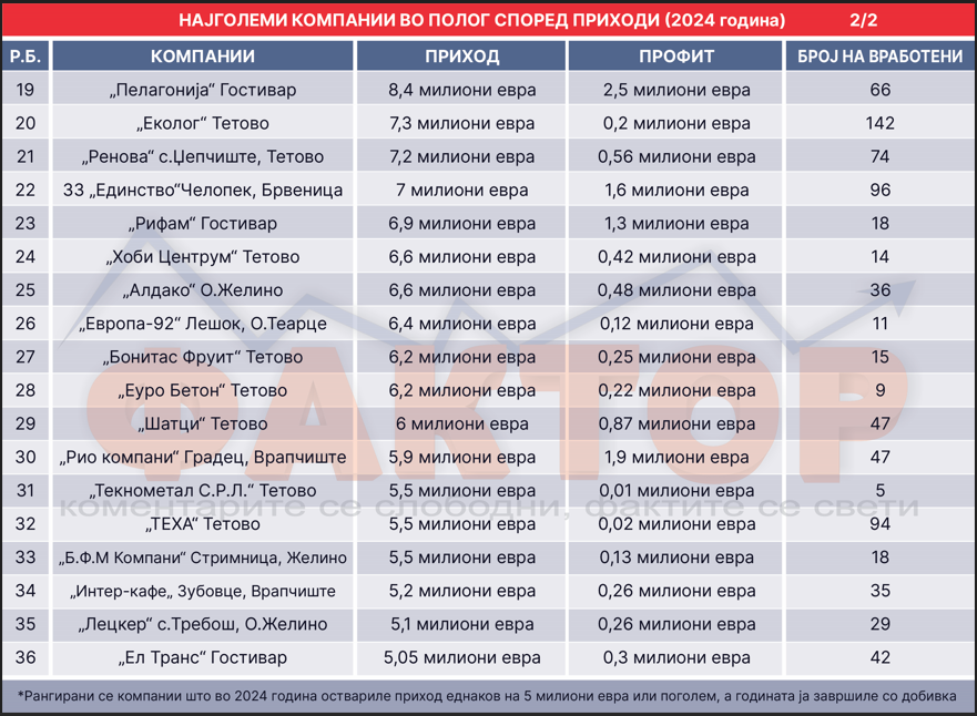 Кои се најголемите приватни бизниси во Полог?