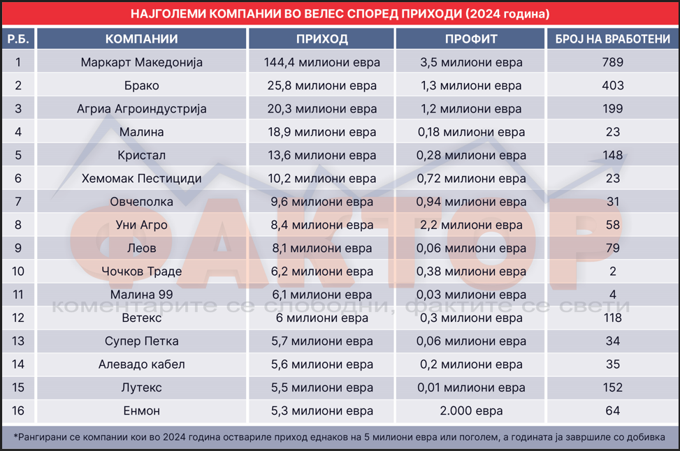 Фактор анализа ВЕЛЕС 2024: Кој го дрма Велес? Еве ги најголемите фирми во градот на Гемиџиите!!!