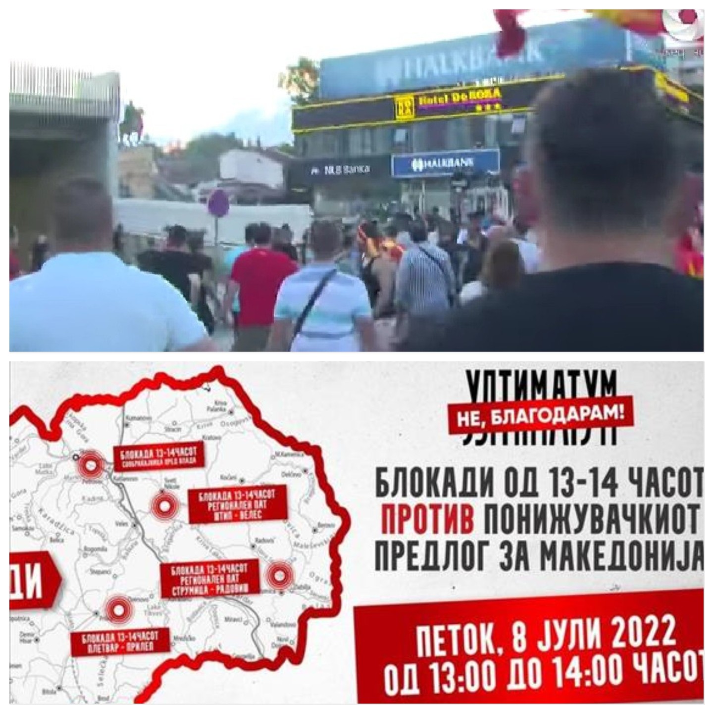 На 4 места, во Скопје пред Владата, како и блокирање на магистралните патишта Штип Велес, Струмица Радовиш и Плетвар Прилеп, објавија неформалните организатори „Ултиматум – НЕ благодарам“.