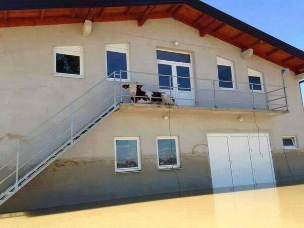 Оваа фотографија ги обиколи социјалните мрежи. Оваа крава покажува дека и нејзе и е мил животот па се засолнила на безбедно.