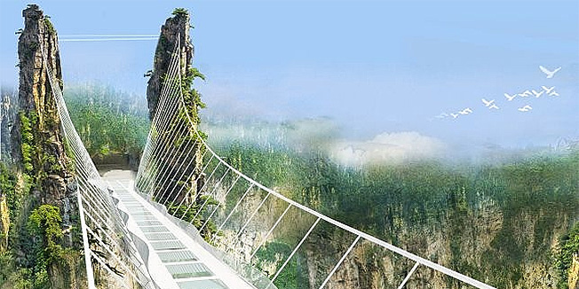 Нов гигантски стаклен мост кој ќе се надвисне над 385 метри широкиот и 300 метри длабокиот Зхангјиалије кањон во провинцијата Хунан во Кина е во завршна фаза на изградба.