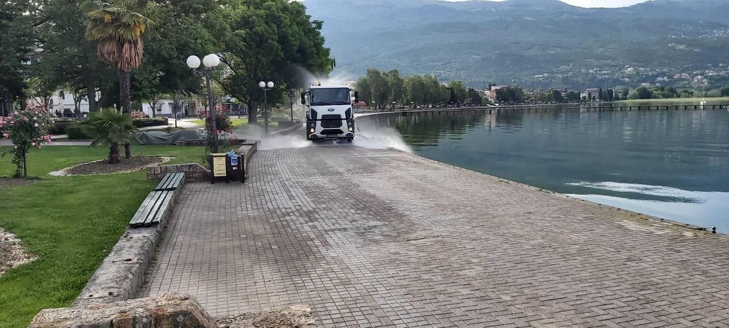 (ФОТО) Охрид започна со интензивна дезинфекција откако си заминаа скопјани