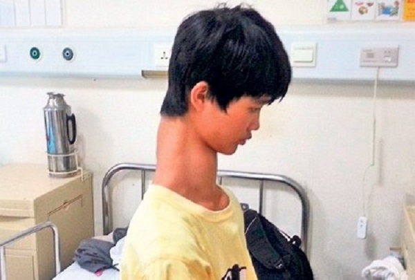 Фу Венгуеј (15) од кинескиот главен град Пекинг има најдолг врат на светот, а неговиот татко Фу Гењоу тврди дека момчето во вратниот дел, наместо седум има дури 10 пршлени.