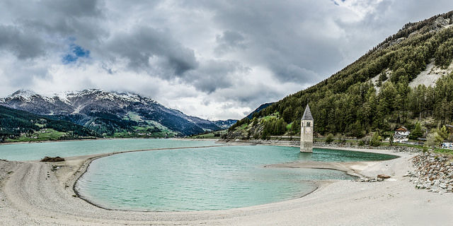 Под езерото Решензе сега се наоѓаат 163 куќи и црква од 14 век. Видлива е само кулата.