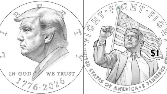 Министерството за финансии на САД презентираше нацрт-дизајн за монета од еден долар со ликот на претседателот на Соединетите Американски Држави Доналд Трамп, по повод 250-годишнината од Декларацијата за американската независност, која ќе се прослави во 2026 година.