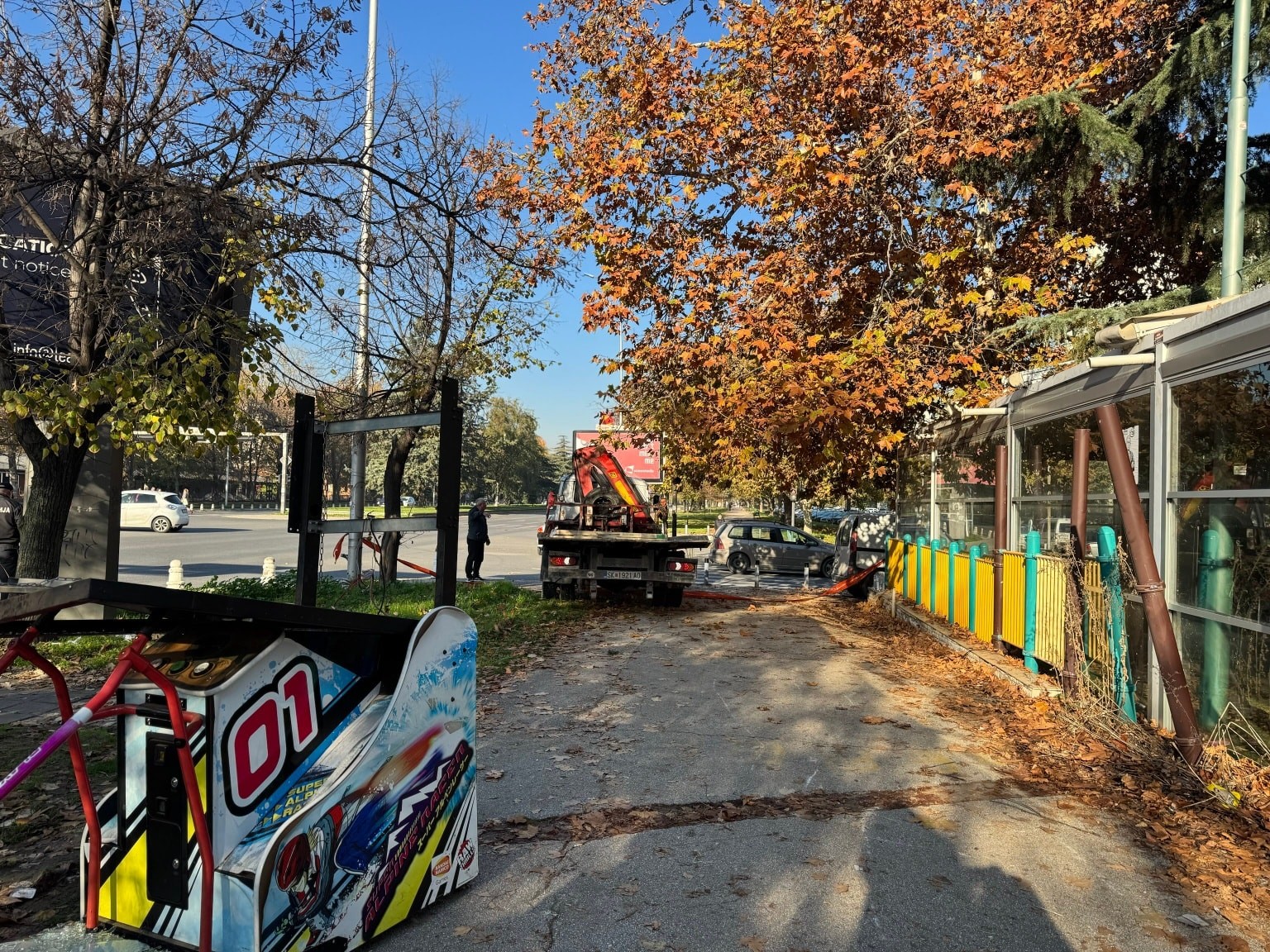 Рано утрово, механизацијата пристигна на терен, а објектот беше целосно урнат во координација со инспекциските служби. Според документацијата, станува збор за конструкција без одобрение за градба, поставена на општинска површина наменета за пешачки и јавни содржини.
