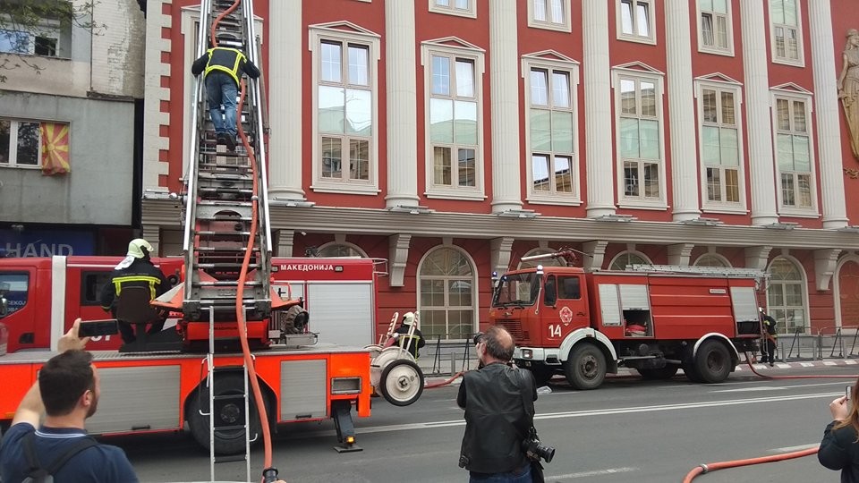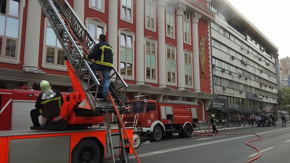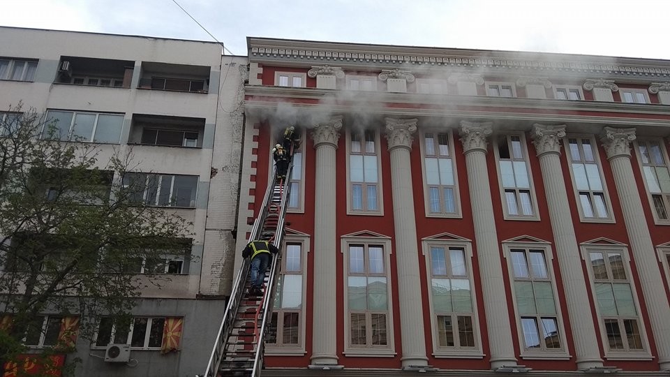 Пожарот изби попладнево. Чад се шири од гроните катови. Неофицијално има пожар во две канцеларии. Сите се евакуирани од објектот.