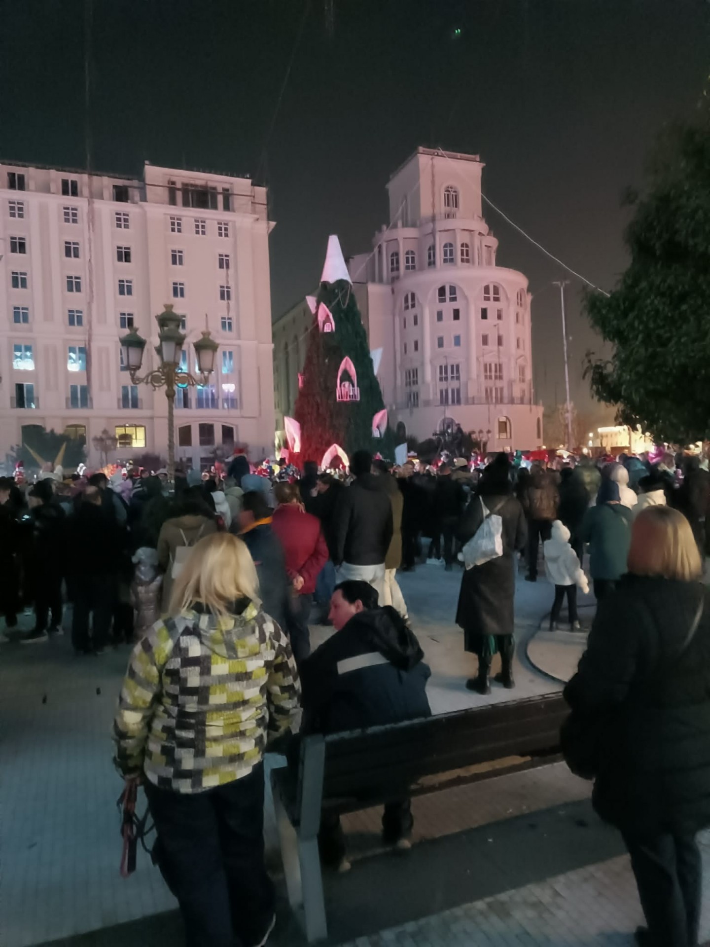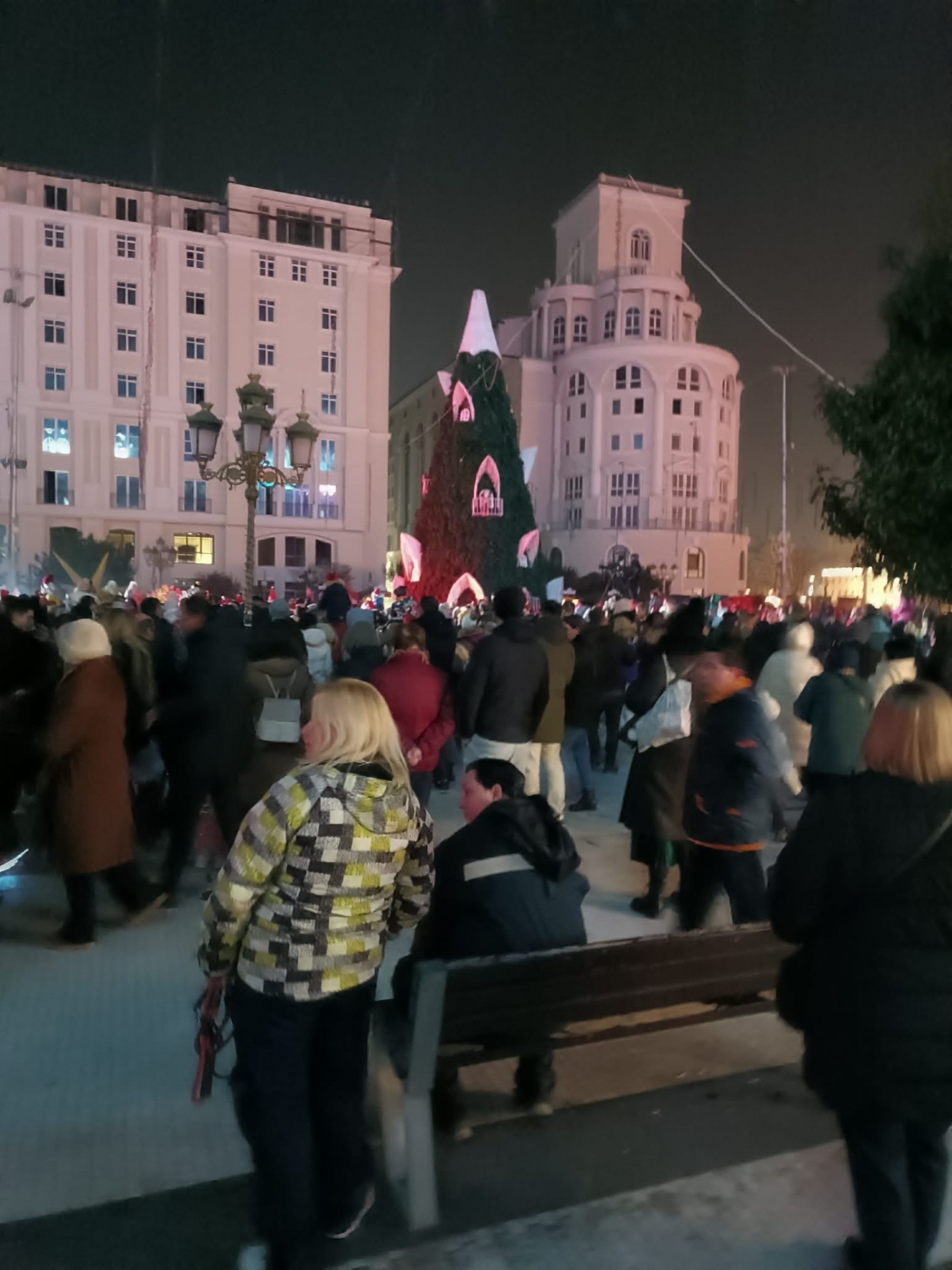 Граѓаните излегоа да го видат палењето на светилките на елката на плоштадот.