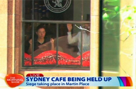 Специјалните единици на органите на редот извршиле евакуација на централниот плоштад во Сиднеј, а огромен број полициски службеници го опколиле локалот „Lint“ во кој престрашените заложници застанати крај прозорите држат црни знамиња со бели арапски букви, пренесуваат светските агенции.