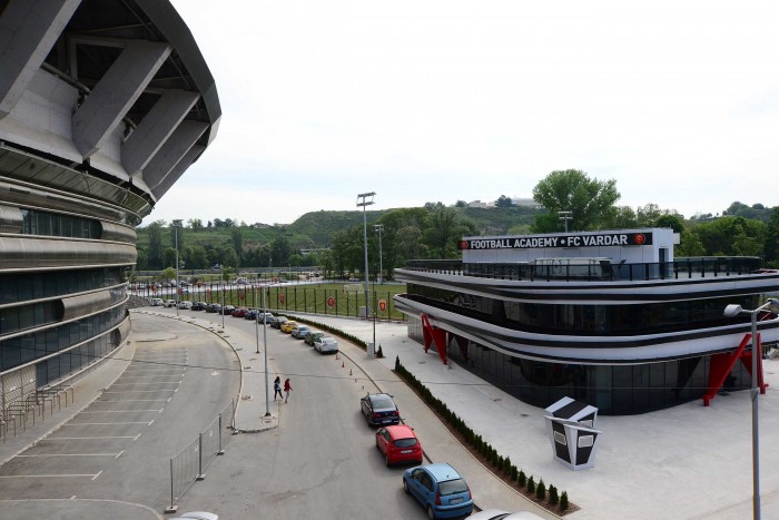 “Објектот е проектиран од Балкан Груп Констракшн. Се работи за модерен дизајн во елипсовидна форма, согласно со просторот и во насока на визуелна адаптација со Националната Арена Филип Втори. Фудбалската академија ФК Вардар е со површина од 1152m2 во кој се сместени 6 соблекувални за децата и тренерите, простор за видео презентации, администатиен простор и други помошни простории. Сите останати простории се опремени централна вентилација со греење и ладење, како и со подно греење. Обезбедени се 50-тина паркинг места, за потребите на објектот. Објектот е осветлен со лед светилки, кои навечер даваат посебен ефект и амбиент. Во екстериерот и ентериерот на објектот доминираат црвената и црната боја и амблемите како симбол на ФК Вардар” изјави Марио Кофилоски директор на Фудбалската академија ФК Вардар на денешната презентација на овој објект кој е од есенцијална важност за развојот на фудбалот како спорт во Македонија.